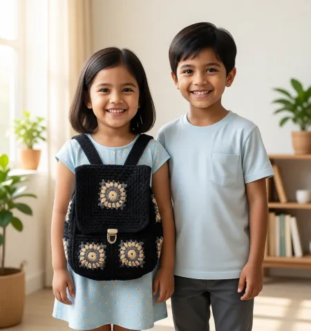 শিশুদের জন্য স্টাইলিশ ও মজবুত 'মিডনাইট ফ্লোরাল' হাতে বোনা ব্যাগপ্যাক