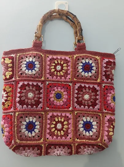 প্রিমিয়াম হ্যান্ডমেড ক্রোশেট গ্র্যানি স্কয়ার ব্যাগ - সাফা টাচ (Safa Touch)